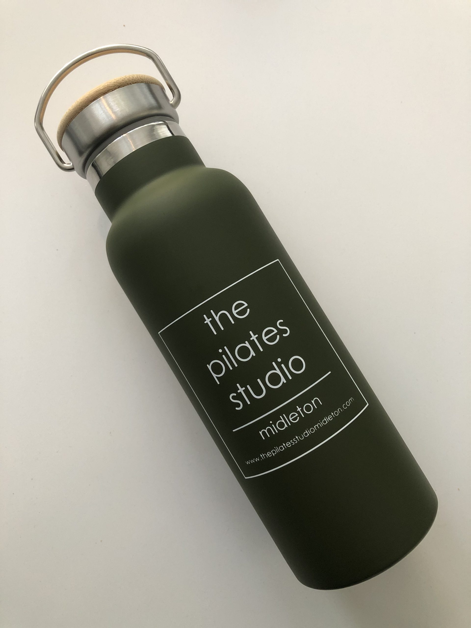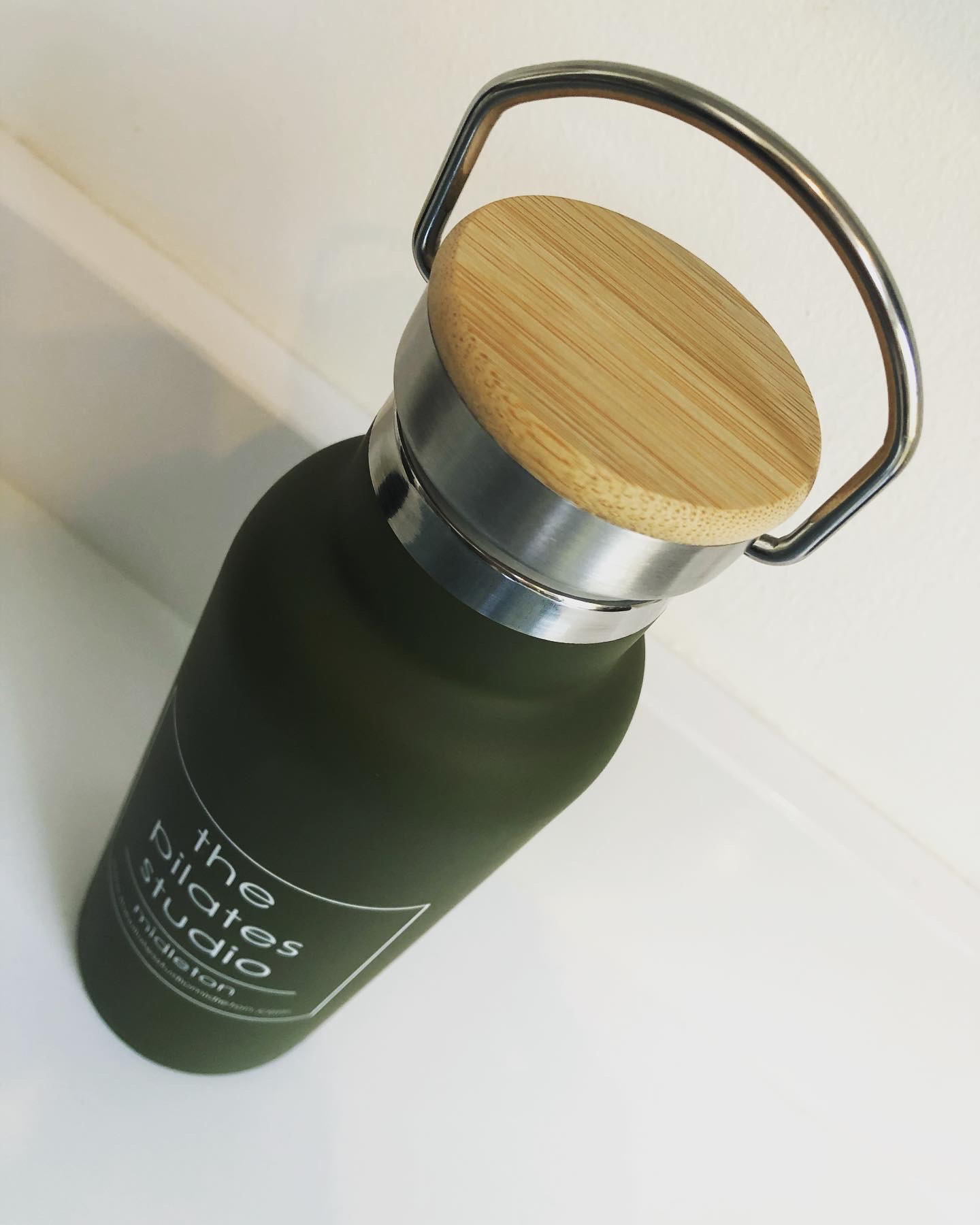Our Pilates studio metal reusable bottles with a wooden screw cap have arrived!